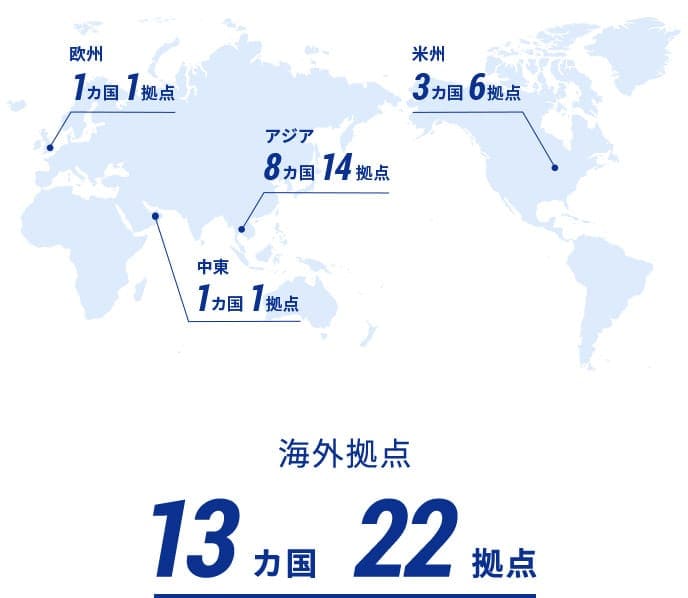 各海外拠点では日本語に加え現地語での対応も行っており、各国の法令や物流事情に精通したスタッフがお客さまのニーズに合わせた最適なサービスをご提案します。